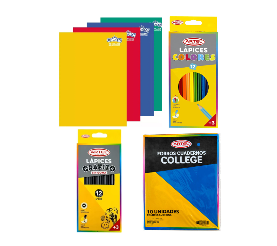 | Referencia: | 10 Cuadernos Collage 5mm + Forros + Lápices Colores Y Mina |