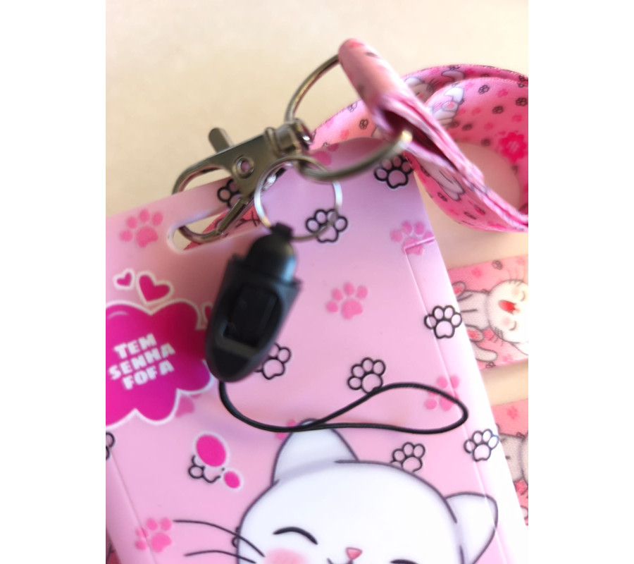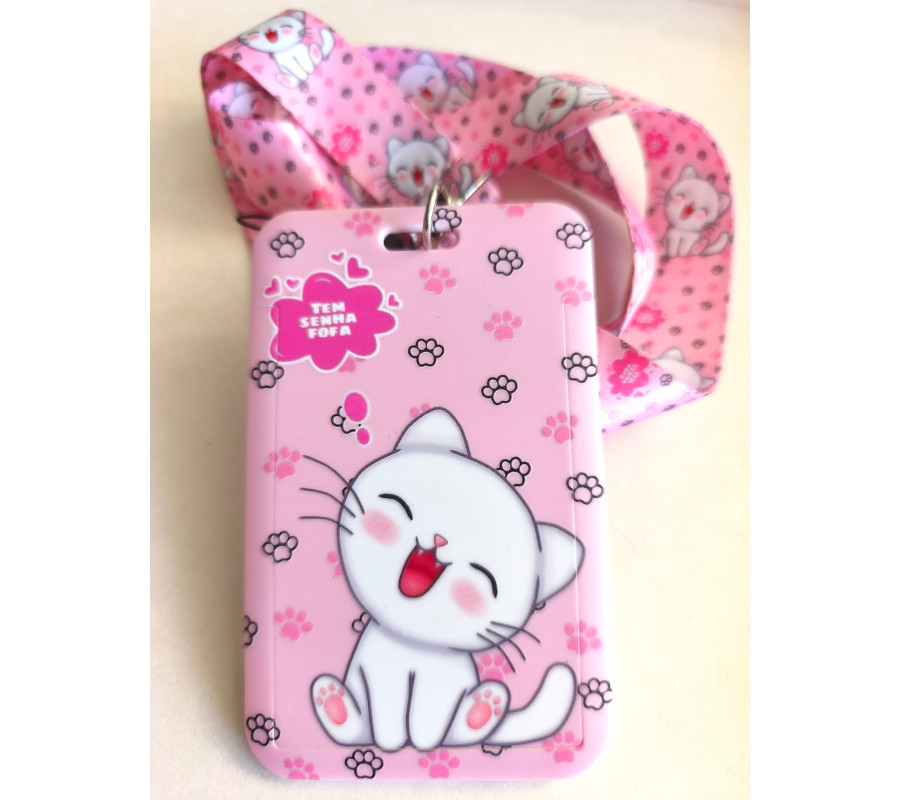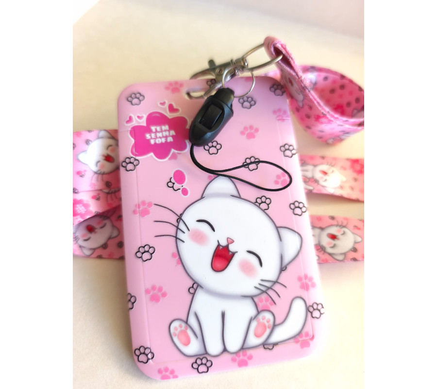 Portacredencial + Lanyard Gatito Blanco