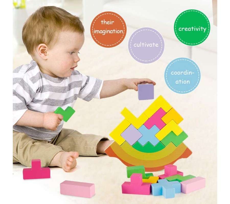 Bloques de construcción de madera con altura de balanceo y apilamiento, juego de equilibrio para niños, rompecabezas de Tetris, bloques de montaje