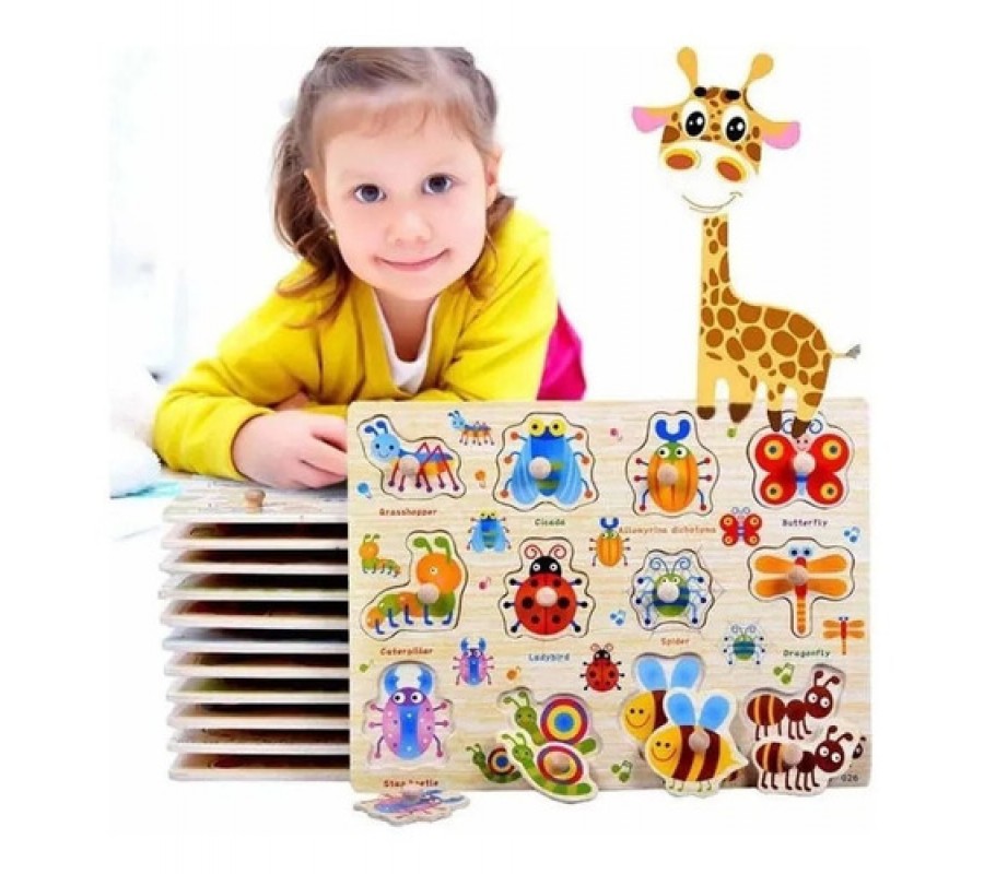 Pack 5 Puzzles Encajes Infantiles de Madera diseñados desde la metodología Montessori.