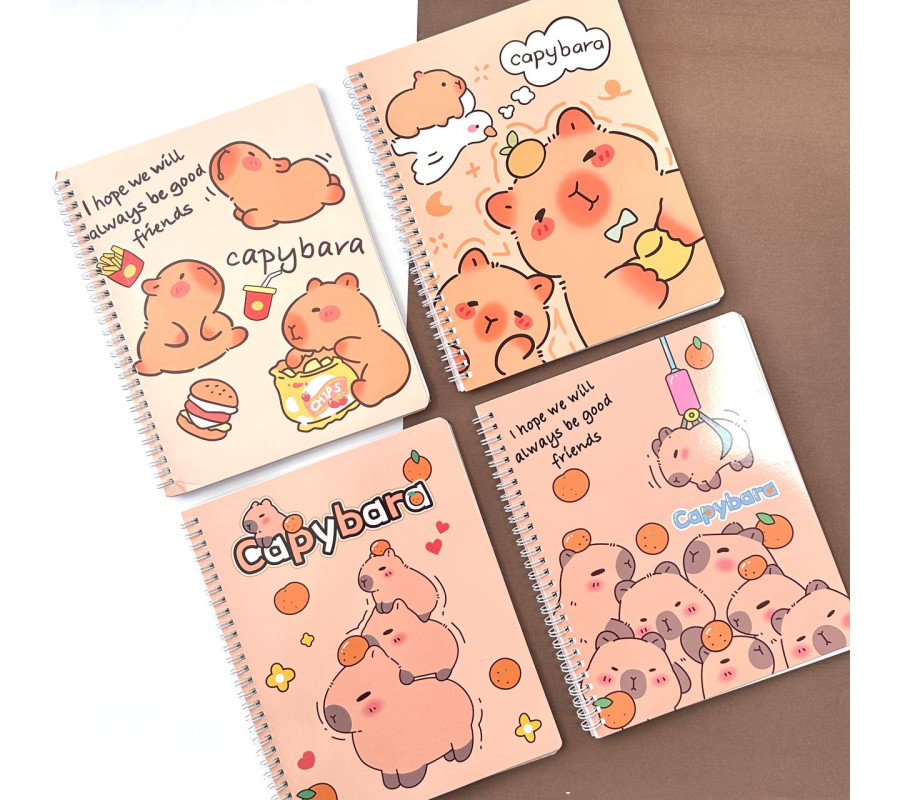 Organiza tus apuntes con este encantador cuaderno universitario de capybara. Su diseño argollado y hojas de cuadro lo hacen ideal para el estudio o trabajo, brindando comodidad y estilo kawaii en cada página.
