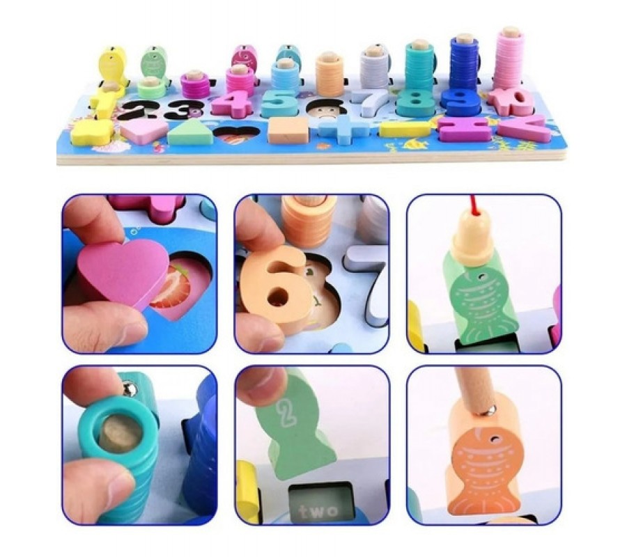 Referencia:Tablero Madera Abaco + Pesca + Encaje + Figuras (4 en 1)