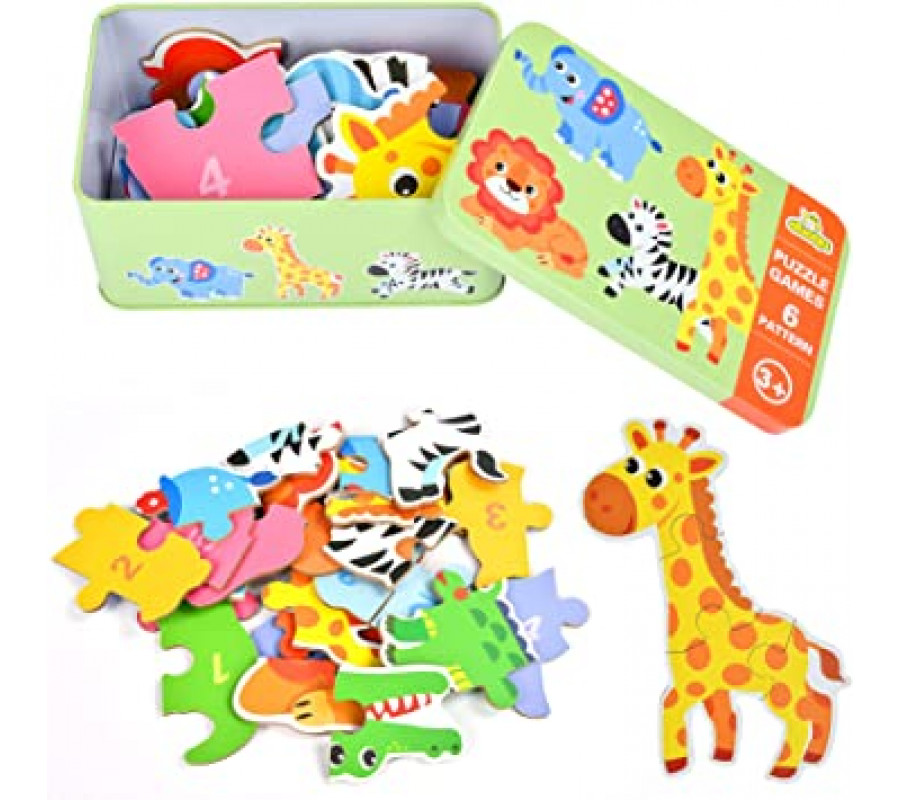 Materiales seguros y no tóxicos: el juego de rompecabezas de madera de animales está hecho de madera.